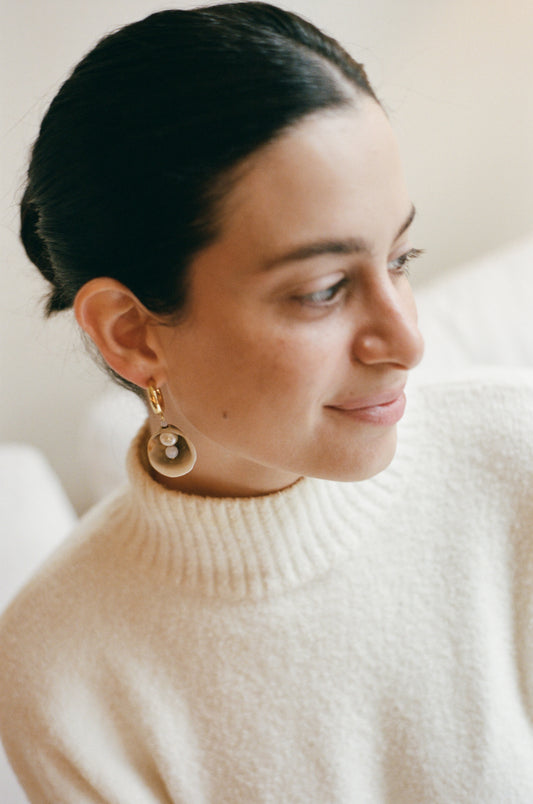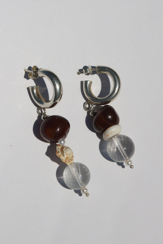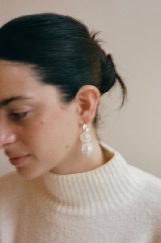 We have a wide variety of earrings from all of our collections. Our nekyia earrings are very special since they are one of a kind and hand crafted by Nathalie herself. These are ensembles with natural shells she has been collecting from her travels.