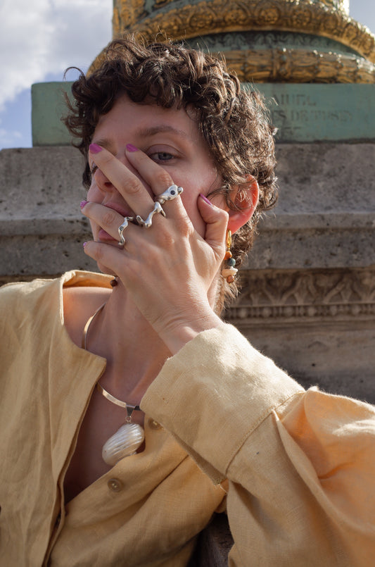 Shot amidst the timeless grandeur of Paris, Odissea’s latest campaign draws inspiration from mystical, mermaid-like figures entwined with Greek mythology. Set in Place de la Concorde—an iconic square in the 8ᵉ arrondissement steeped in centuries of history —surrounded by fountains adorned with tritons and naiads, the scene is framed by ocean-like marble and glints of gold. A timeless elegance and ethereal beauty our pieces bring to life.