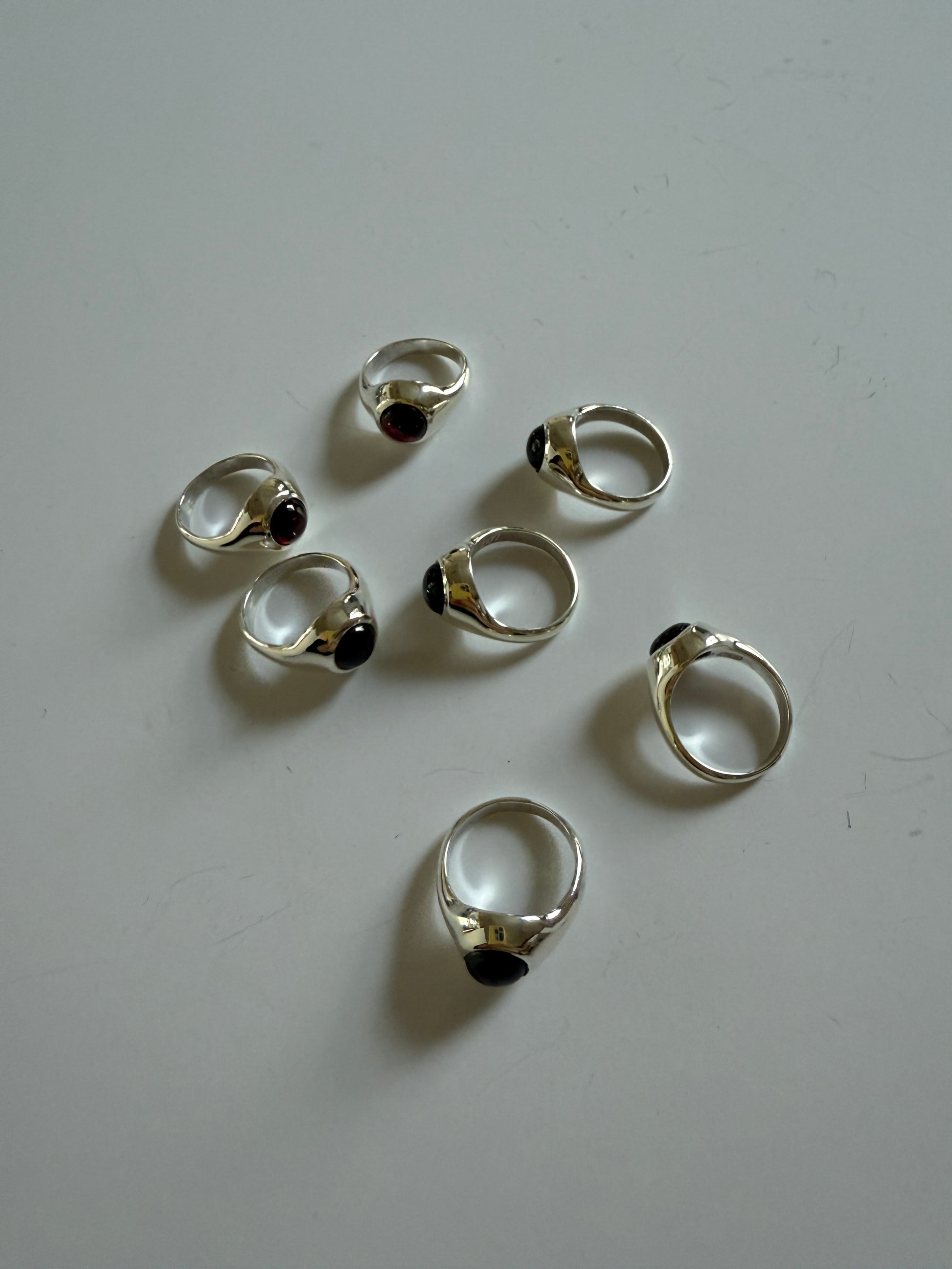 Our Beduin ring is a signet meant to be worn everyday. Its faceted stone makes it an elevated piece that adornes the silver in a subtle way.