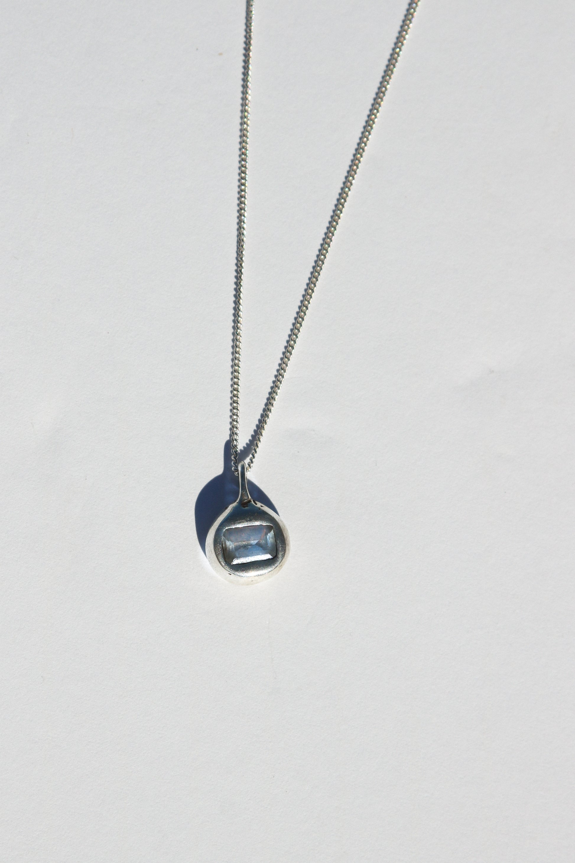 Handcrafted in 9.25 sterling silver, our Dune Pendant has an emerald-cut aquamarine, its serene blue hue mirrors the calmness of the landscape.