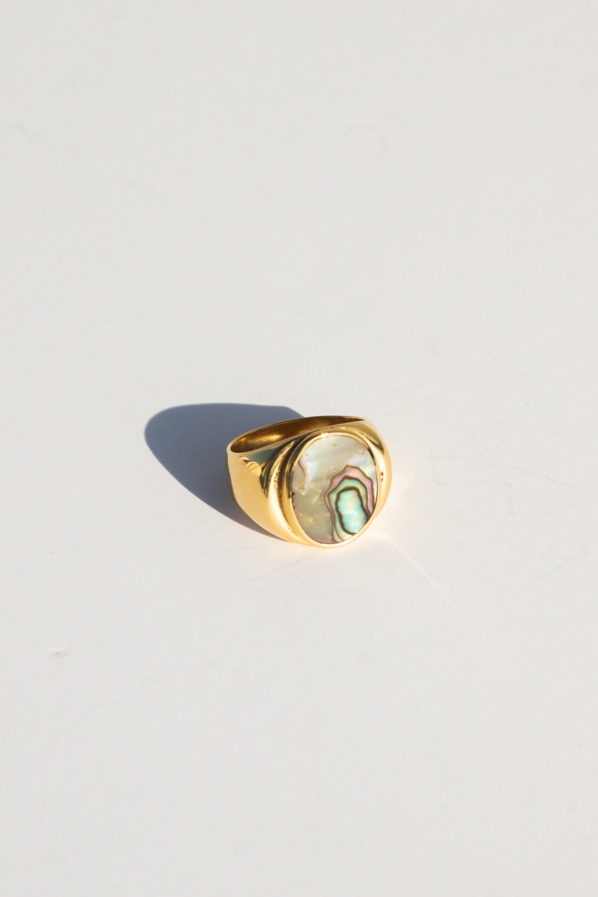 Perlmutt comes from the germanic meaning of “mother of pearl”. This ring is part of our abalone collection, it has matching earrings that complement the look. Bold, perfect and elegant, this collection is causal chic for drinks or fancy bold for a special occasion. All stones vary because of their natural course.