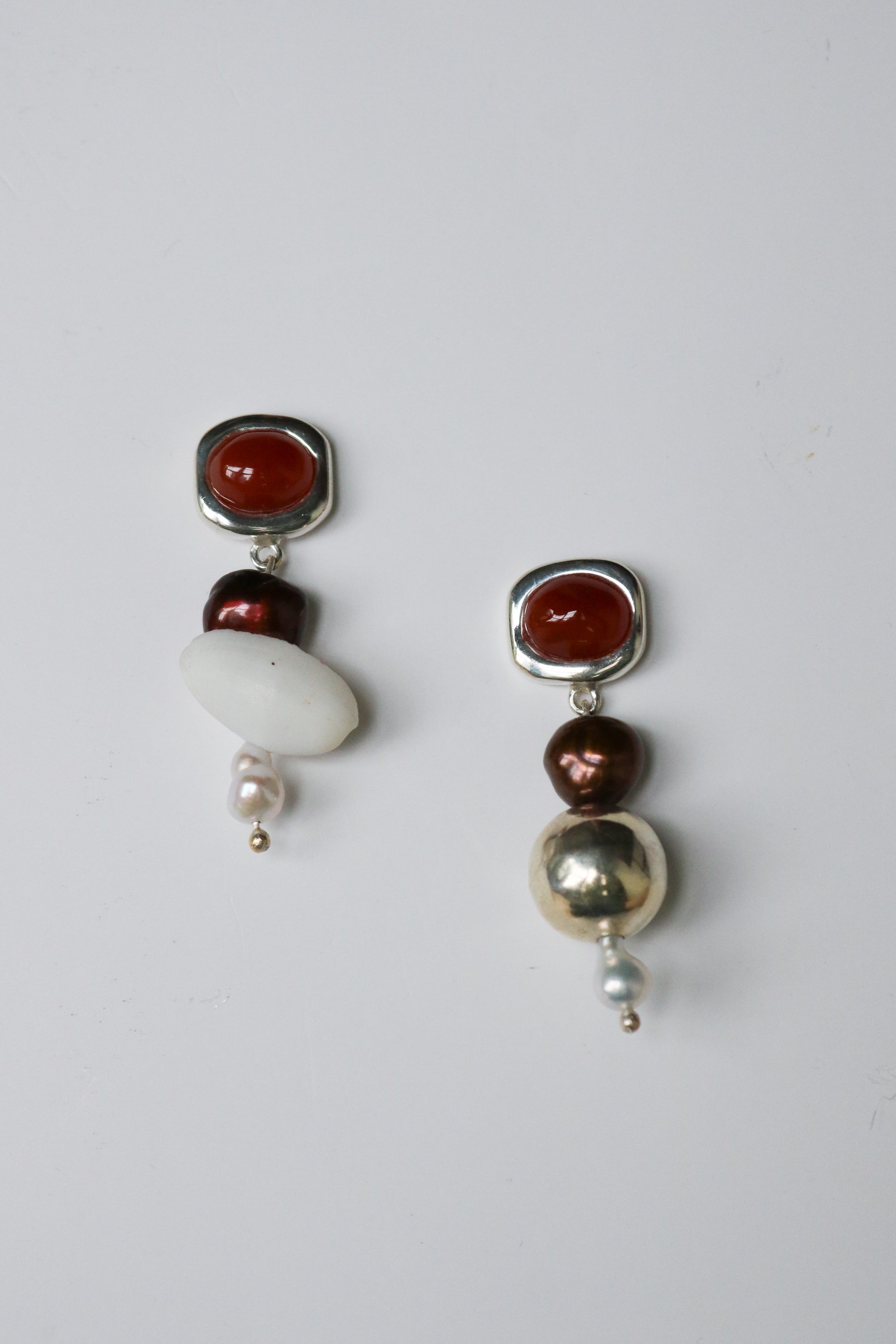 The Ingeborg Earrings balance elegance and restraint. An evolution of our Nekyia hoops, the design is refined and architectural, featuring a cabochon-cut stone paired with baroque pearls.